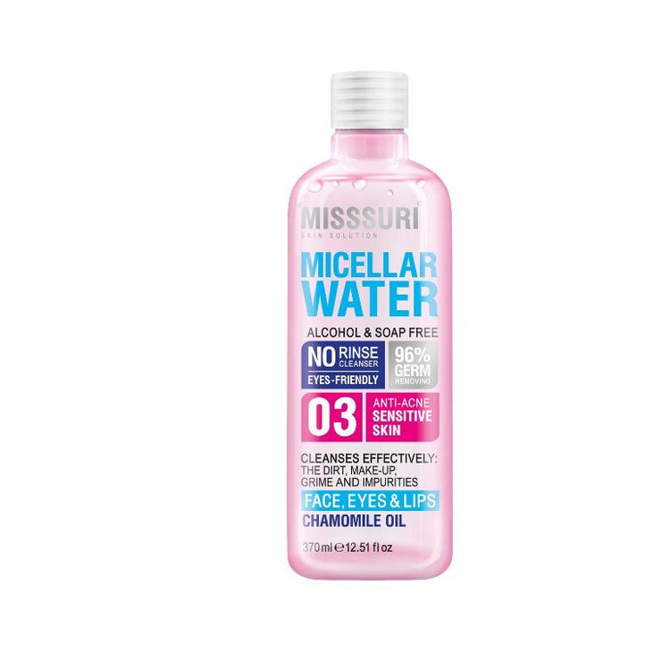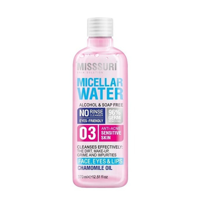 میسلار واتر میسوری یک پاککننده صورت بدون ترکیبات صابونی، الکل و بدون نیاز به آبکشی میباشد که در چهار تنووع برای انواع پوست طراحی شده است. میسلار واتر با قابلیت جذب آلودگی، مواد آرایشی و چربی اضافی بر روی صورت، چشم و لبها تا 96% قدرت پاککنندگی دارد. میسلار واتر مناسب پوست حساس حاوی روغن بابونه میباشد که علاوه بر پاککنندگی از التهابات و حساسیت پوستی پیشگیری نموده و با اکسیژنرسانی مانع از ایجاد خشکی یا چربی میشود.