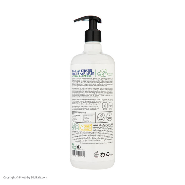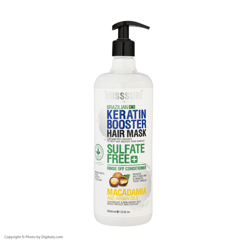 ماسک مو کراتینه میسوری، با داشتن ترکیباتی کاملاً طبیعی درمانی برای موهای آسیب دیده ،خشک و دچار مو خوره به شمار می رود.کراتینه موجود در ماسک موی میسوری اثری آرام بخش بر روی موهای آسیب دیده دارد. ماسک موی بدون سولفات و کراتینه میسوری محصولی با ترکیبات گیاهی عالی و کاملا بدون سولفات ،بدون سیلیکون و بدون پارابن است. این محصول حاوی روغن ماکادمیا ، روغن آرگان ، روغن جوجوبا ،عصاره بابونه ، کرایتن هیدرولیز شده، کلاژن هیدرولیز شده و موم عسل بوده که موجب ترمیم موهای اسیب دیده و خشک می گردد.