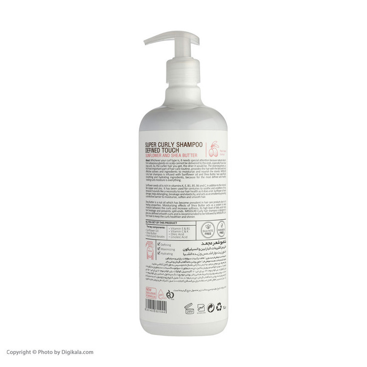 شامپو مخصوص موهای فر 1000 میل میسوری حاوی عصاره شی باتر و گل آفتابگردان و فاقد سولفات و پارابن است.با توجه به محتوای ویتامین موجود در شی باتر میتواند به تقویت و بازیابی موهای مستعد شکنندگی و موهای آسیبدیده کمک کند و التهاب پوست سر را نیز کاهش میدهد.یکی دیگر از از فواید شی باتر آبرسانی به موهاست. موهای مرطوب در وهله اول کمتر وز میشوند. همچنین اسیدهای چرب شی باتر نیز برای کنترل وزی و صافشدن موها بسیار مناسب هستند.عصاره آفتابگردان به موها در حفظ رطوبت مو کمک میکند. استفاده از آن روی موها می تواند باعث صاف شدن موها شود و موهای شما را نرم و راحت تر کند. آفتابگردان سبک است و برای صاف شدن موخوره می توانید از آن بهره بگیرید.