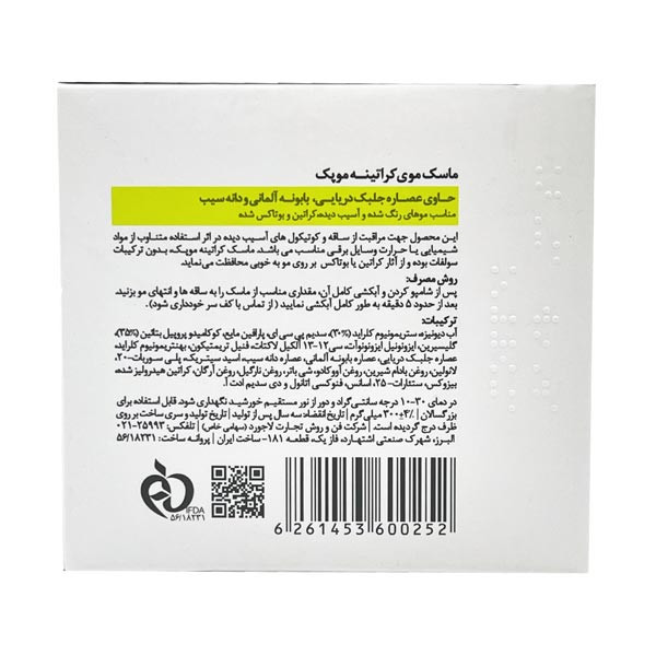 حاوی عصاره گیاه بابونه، جلبک دریایی، ویتامین و مواد معدنی کمک به افزایش رطوبت موها و افزایش استحکام و مقاومت آنها