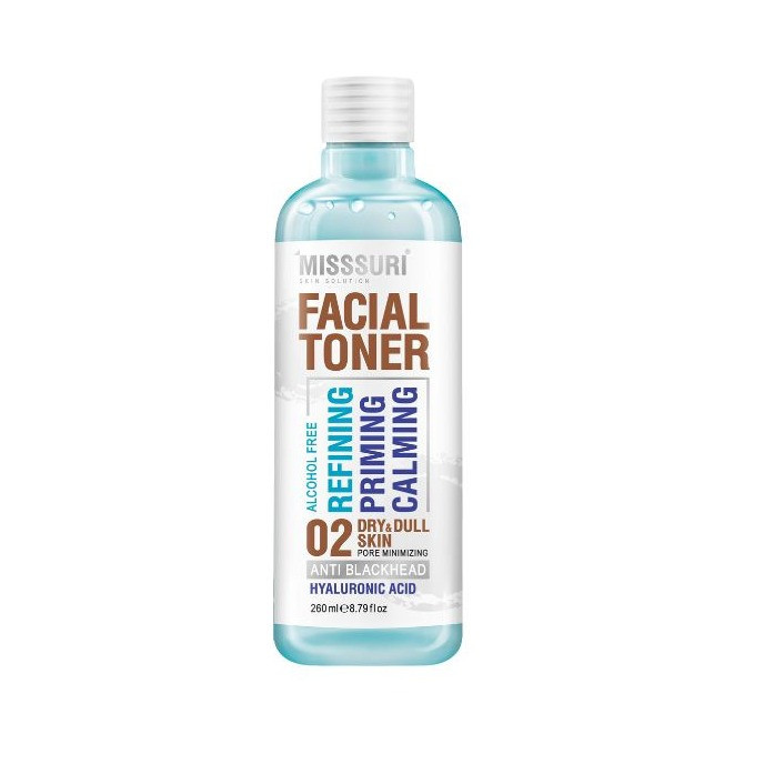 تونر میسوری یک محصول مراقبتی در روتین پوستی میباشد که پس از شستوشو pH پوست را تنظیم مینماید. این محصول با کوچک کردن و بستن منافذ باز پوست، مانع از ایجاد جوشهای سرسیاه میگردد. تونر میسوری در چهار تنوع برای انواع پوست طراحی شده است. تونر صورت میسوری مناسب پوست خشک حاوی هیالورونیکاسید است که علاوه بر تنظیم pH، پوست را آبرسانی کرده و از دیهیدراته شدن پوست پیشگیری مینماید.
