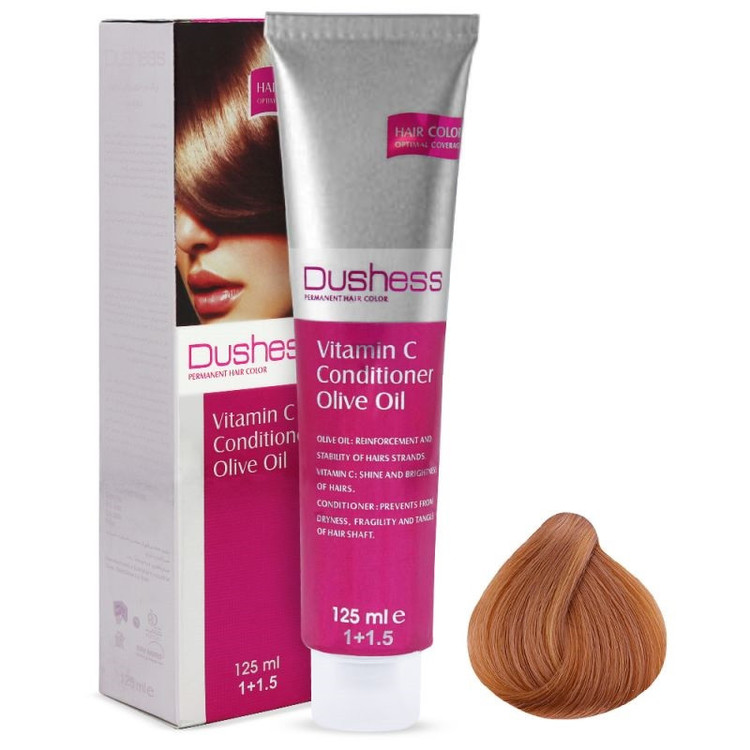 رنگ موی دوشس، یک رنگ موی دائمی است که قادر است رنگ موجود موها را تغییر داده، تیره تر یا روشن تر نماید. قدرت پوشش رنگ موی دوشس برای موهای خاکستری عالی بوده و در هر شرایطی کاملا پایدار است. به سبب دارا بودن غلظت و تراکم بالای رنگدانه قادر است تارهای سفید و خاکستری مو را پوشش دهد و رنگی با جلوه کاملا طبیعی و زیبا بیافریند. پیگمنت ها یا رنگدانه های موجود به سبب خلوص بالا و کوچک بودن ذرات آن با کمی باز شدن کوتیکول به راحتی به داخل مو به صورت عمیق نفوذ میکند و با اتصال قوی آن به درون تارهای مو محبوس میگردد و علاوه بر ایجاد رنگ های یکنواخت و پوشش 50% تا 100% باعث طولانی تر شدن دوام رنگ مو میگردد. پایین بودن میزان آمونیاک رنگ مو ضمن عملکرد سریع به ساختار مو آسیب نمیرساند و بنابر این از موخوره خشکی و شکنندگی تارهای مو جلوگیری میکند. به سبب دارا بودن روغن زیتون و ویتامین E، امگا 6، امگا 3 و اسید های چرب موجود در روغن گیاهی و توانایی جذب آن در ساختار مو و تغذیه آن، علاوه بر براقیت و نرمی موها استحکام تارهای مو را تقویت می سازد. با استفاده از نرم کننده و ترکیبات سیلیکونی و ویتامین C در این رنگ مو ضمن سالم نگه داشتن مو و ایجاد حالت ابریشمی در نهایت رنگی براق و درخشان ایجاد میشود که ترکیبی است از انعکاس نور و شکست نور از روی ملانین طبیعی روشن نشده و پیگمنت های وارد شده به ساختار مو می باشد. روش انجام تست حساسیت: این تست باید 48 ساعت قبل از رنگ مو انجام شود؛ مقدار کمی از رنگ مو و اکسیدان را مخلوط کنید. سر بطری و تیوب را مجددا محکم ببندید. مخلوط را روی یک سانتی متر مربع پوست دست در بالای آرنج خود بمالید، 30 دقیقه مکث نمایید و سپس شستشو دهید. ناحیه تست شده را 48 ساعت بعد بررسی کنید. اگر پوست شما نسبت به رنگ مو واکنشی نشان نداده است می توانید موهای خود را رنگ کنید.